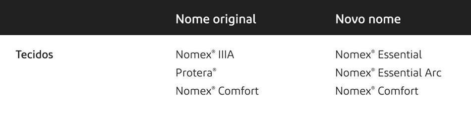 A DuPont Personal Protection, fabricante de tecnologias de proteção contra chamas (FR) e arco elétrico, acaba de anunciar a nova nomenclatura para a linha de produtos Nomex®. A ideia é unificar de forma global a designação, já que anteriormente os artigos possuíam nomes diferentes em cada país em que a companhia atua. Trata-se de uma maneira de ajudar os gerentes de segurança a identificar a melhor solução para suas necessidades, independentemente da região.