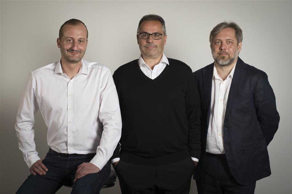 Da esq. para a dir.: Time Neteven: Antoine Riviere, Diretor Comercial, Greg Zemor, CEO, e Stéphane Brault, Diretor de Tecnologia